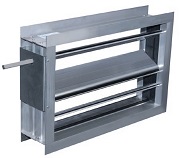 - состоит из корпуса с присоединительными фланцами, установленных в нем двустенных лопаток поворотного типа, приводимых в движение системой рычагов и тяг, электрического (либо ручного) привода, а также трубчатых электронагревателей из нержавеющей стали в местах сопряжения лопаток для облегчения их открытия в случае обмерзания в зимнее время.
