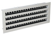 - состоит из квадратного корпуса из алюминиевого профиля, окрашенного методом порошкового напыления в белый цвет,в который при помощи пружин устанавливается блок из направляющих пластин с четырехсторонним направлением воздуха.