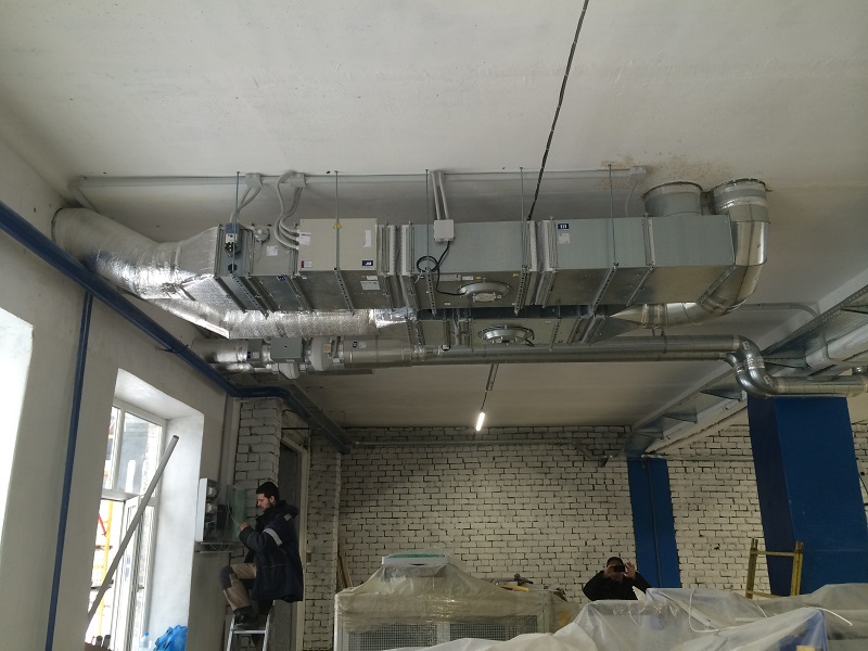 Работы по монтажу систем приточно-вытяжной вентиляции и кондиционирования воздуха в помещениях лаборатории, переговорной, бухгалтерии, работы по монтажу системы вытяжной вентиляции, системы холодоснабжения и системы подачи сжатого воздуха в помещении предприятия общей площадью 507,7 кв. м.